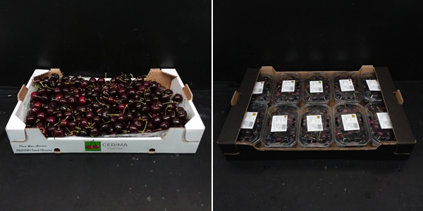 "We'll be getting the first Spanish cherries today - 1kg packs of the Royal Tiogat variety. Again, the new varieties are replacing the older and softer Burlat types. We get these cherries from Agrupacion Valle de Jerte, the largest cherry cooperative in Spain. We work closely with them for retail programs and traditional 2kg packaging."