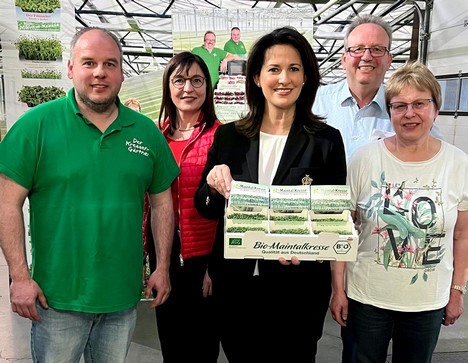 Bavarian Agriculture Minister Michaela Kaniber (m) visited the company a few days ago to discuss the current challenges with Christian Gimperlein (l) and his team.