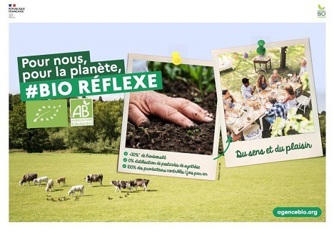 Agence BIO, La Maison du Bio and the interprofessional organizations Cniel, Cnipt, Cnpo, InterApi, Interbev, Intercéréales, Interfel, Synalaf, Terres Univia, are launching the first large-scale campaign to promote organic products: “For us and for the planet, #BioRéflexe”.