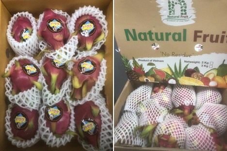 Pitahayas from Thailand (r) and Vietnam