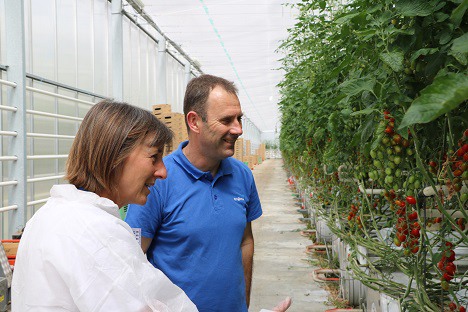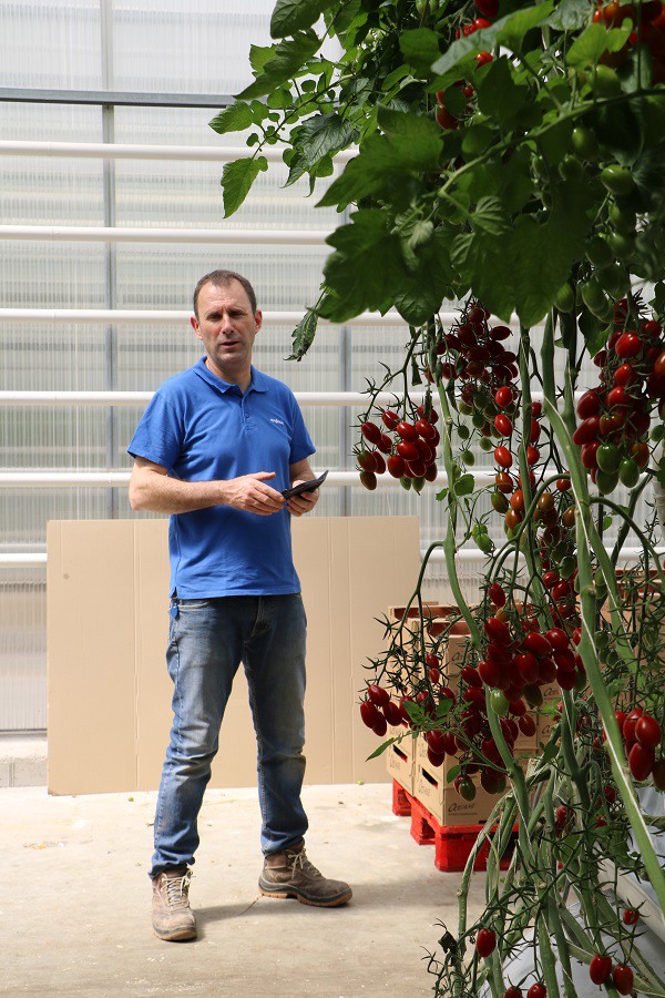 After the first experience as a crop manager for a greenhouse grower in the Nantes region, Marc-André Goulet settled in 1993 on the Chenardière site, a farm located in the commune of Haute-Goulaine, a stone's throw from the family farm and barely further from his first employer. Of the 2.4 ha of greenhouses on the Chenardière site, M.-A. Goulet undertook the renovation in two stages: 1.4 ha from the year he set up and 1 ha a few years later. M.-A. Goulet's business expanded in 2000 when he took over the family farm following the retirement of the previous generation. Today, M.-A. Goulet produces only tomatoes on a surface of 8.4 ha of greenhouses, the last constructions of which date back to 2014 and 2016 (semi-closed greenhouse). The production is divided into 1/3 in round tomatoes, 1/3 in bunches, and 1/3 in elongated cherries. All marketing is entrusted to the Océane cooperative group.