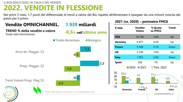 After a brilliant two-year period 2020-2021 during which the organic sector benefited from the effects of the pandemic, the context of instability in which 2022 opened, with the Russian-Ukrainian conflict and the inflationary scenario linked to energy and raw material costs, is changing the consumption habits of Italians.