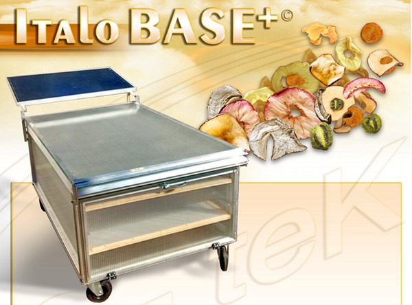 Italo Base+ (registered trademark) is a G-teK device that enables natural-effect dehydration using solar energy to warm up the air and favor its circulation for the drying process. It is suitable for all organic materials, especially fruit and vegetable, but also meat, fish and other matrices.