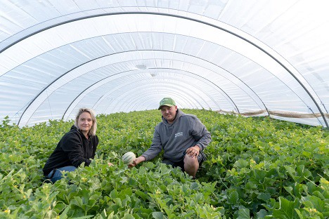 Reweghs is currently the only professional grower of Charentais melons in Flanders. The melons are grown in tunnels equipped with thermal and anti-condensation films, creating a kind of microclimate. Such tunnels keep the melons warm and frost-free while providing them with sufficient light. Three years ago, fruit growers, Kristof and Kim took on this challenge: "We've been growing strawberries in open fields for 18 years," says Kristof. "We started small, but now we grow 14 hectares of strawberries. Three years ago, we decided to start growing melons. This fruit requires almost the same infrastructure as strawberries, which made it easier for us. Colruyt Group was quickly interested in the project. As a result, we were able to start marketing.