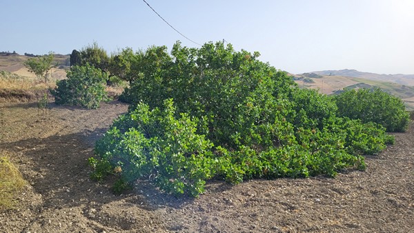 Traditionally grown pistachio plant. Branches elongate until they touch the ground.