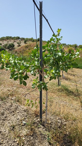 "Currently, the most widespread variety is 'Napoletana' (or Bianca) on terebinth rootstock, despite the fact that this rootstock combination needs a very long time to reach production (about 10-12 years). However, there are fast-growing hybrid rootstocks (such as UCB1), which, when combined with new varieties (Larnaka), allow the plant to come into production as early as the fourth/fifth year after planting. The focus is on cultivars characterized by fruits with very good green color and aroma."