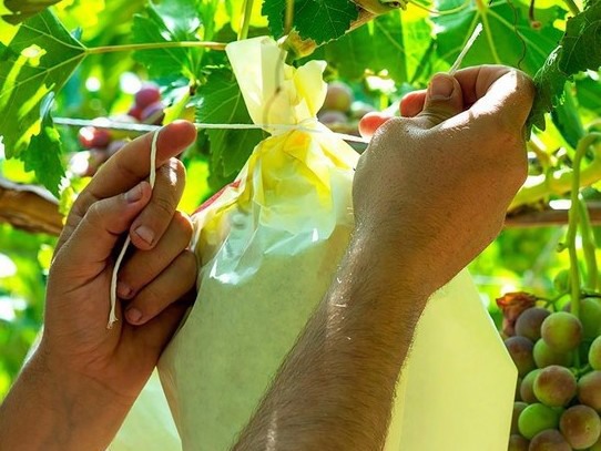The table grape season is kicking off in Spain, and in just a few weeks, we'll see the start of the harvest of an exclusive grape with a protected designation of origin which stands out for its unique ripening process. In 7 municipalities of the Medio Vinalopó region, in the province of Alicante, bunches of grapes that will be marketed with the differentiating seal that will accredit them as Uvas Embolsadas del Vinalopó DOP have already started being covered with paper bags.