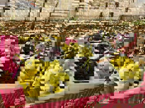 Il Galletto's supply is wide and varied and has a wide range of early, greenhouse-grown grapes and Tarocco oranges.