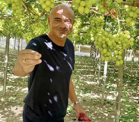 In the photo, Giuseppe Auteri is showing the first Sweet Globe grapes of Sicilian cultivation