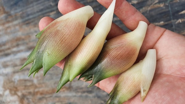Chefs and wholesalers but these unusual greenhouse products. "Some chefs buy directly from us, but more often, they buy it via wholesalers who get the product from us," says Sander. He has a webshop too. "That's mainly for consumer sales, but it's also a showcase for chefs. They can see what we all have to offer." For example, Dutch Wasabi also has Japanese ginger called myoga. You eat the flower, not the root. "We're going to do more of this," adds Sander.