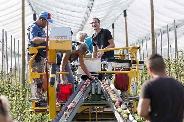 Harvest at Lake Constance started about 10 days earlier than usual, Schraff said. "We had a fairly early bloom at Lake Constance, and excellent conditions. This meant lots of sunshine and some rain every now and then. These weather conditions ensured a good cell division phase, so the apples were of optimal size and they were very tasty. At the beginning of the harvest, the temperature differences between day and night, which are important for a beautiful coloration, were still too small. This changed with the cooler nights in the last two weeks, which provided excellent coloration of the fruit. Overall, the quality of the main varieties harvested so far -Santana, Elstar, Topaz and Jonagold- is very good. Boskoop and KANZI® in organic quality are also excellent. In the coming days, the Pinova, Natyra® and Braeburn varieties will then reach their optimal harvest time."