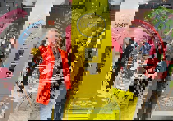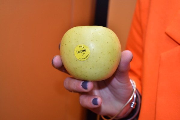 "100% organic, 100% yellow, and 100% addictive" is how Alice Gianola, marketing and communication manager of Innatis Group, described the new club variety unveiled during Fruit attraction. The Lubee was displayed via its yellow arch on the Group's stand, among the other varieties Honey Crunch, Lolipop, Choupette, Juliet, and Zingy.