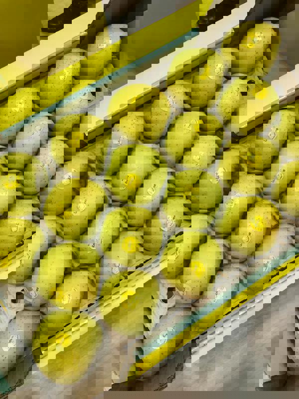 Lubee is the result of 20 years of research by the breeder Gradilis and 5 years of reflection on the marketing and sales strategy to make this apple the new star of the organic yellow apple section. "When we approached Gradilis, we were looking for an organic yellow apple to complement a very under-supplied shelf. But what immediately won us over was its taste. Under its rustic apple appearance, it concentrates absolutely all the qualities sought by the young generations. When you bite into it, it is a real explosion of flavors. It is very sweet, between 17 and 18 degrees Brix, with notes of exotic fruits, and very crunchy and juicy. It was a real favorite and we are convinced that it will win over young consumers."