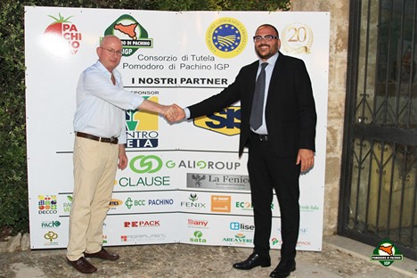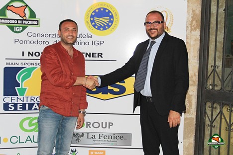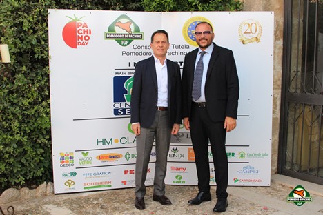 Above: Giovanni Planeta (SIS - Centro SEIA) and Sebastiano Fortunato, president of the Consortium for the Protection of the Pachino Tomato PGI. Below: Photo Maurizio Forte (ITA-ICE) and Sebastiano Fortunato.
