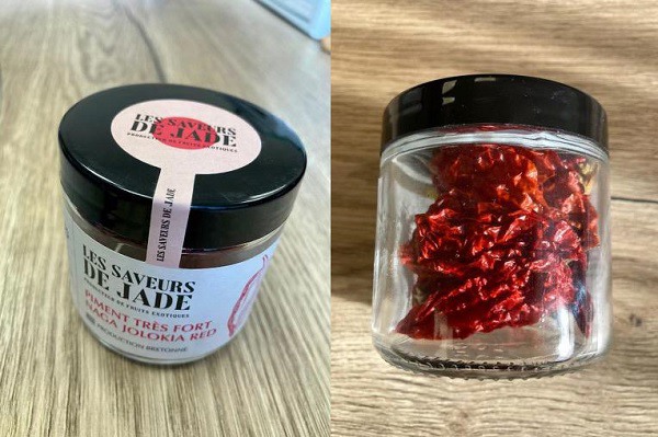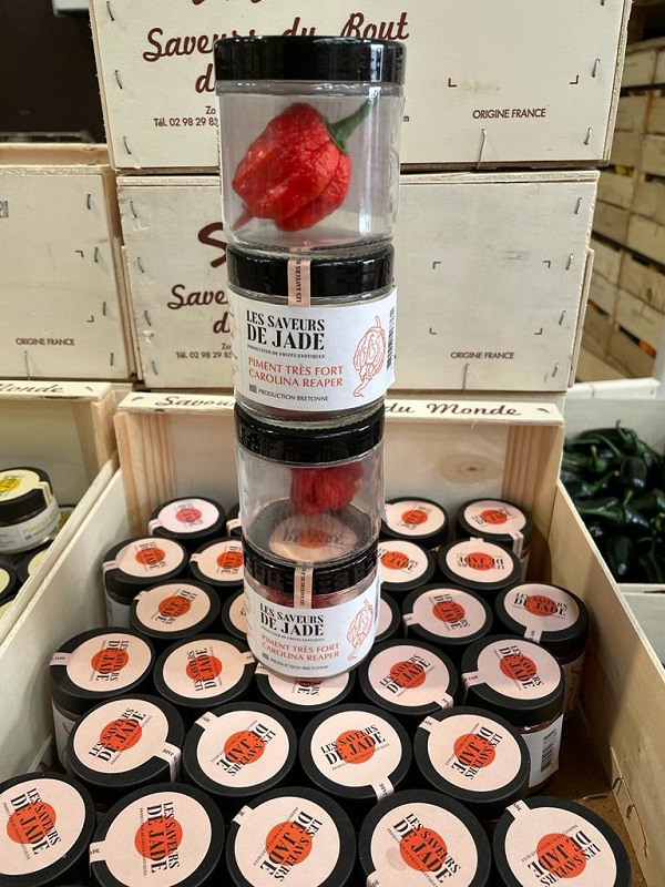 To be handled with care, the Carolina Reaper of SBM is sold in jars under the brand “Les Saveurs de Jade.”
