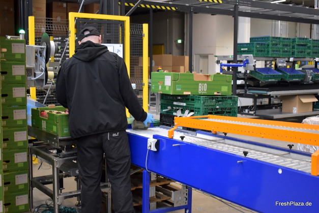 "The packing station was built in two stages. The first five lines were inaugurated in 2010 with a then new four-lane sorting system that calibrated the fruit according to external criteria and weight," Carolin Metzger tells us.