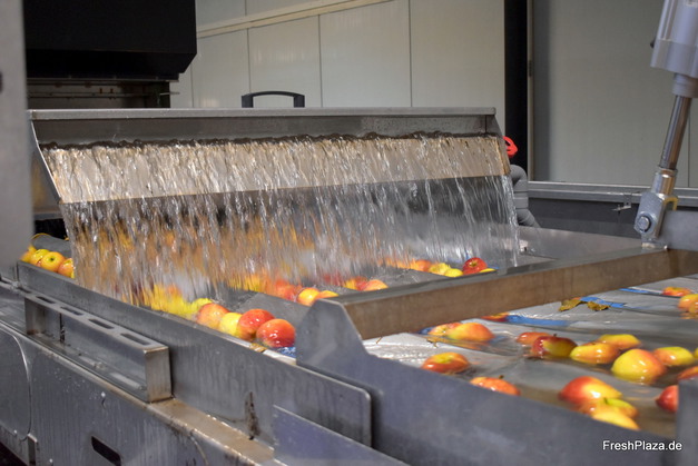 "The plant is state of the art and it operates through low-energy motors. The process water is continuously cleaned via two fully automatic filtration systems, which also saves water. The new water treatment plant includes activated carbon and sand filters as well as a sterilization system with UV light. So in the end, what comes out is drinking water quality, fed back into the production process. From the receipt of the fruit to the dispatch of the goods, the process steps are recorded by scanners to ensure 100 percent traceability. This enables us to trace fruit from the plot to delivery to the retailer and also the reverse route from the customer to the orchard."