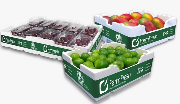 FarmFresh conserver boxes contribute to sustainability on three fronts: in post-consumer recycling, EPS can be 100 percent recycled and transformed into raw material; they increase the shelf-life of fresh products by up to 30 percent; and they help lower the carbon footprint.