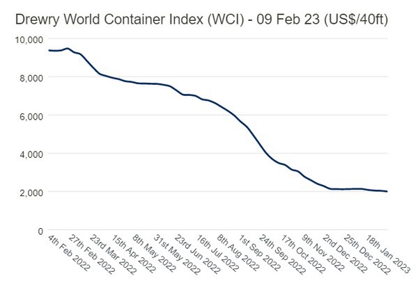The Drewry's World Container Index (WCI) annexed the psychological mark of US$2,000 on the downside for the first time since July 2020, post the first set of quotes reported in the aftermath of the Chinese New Year.