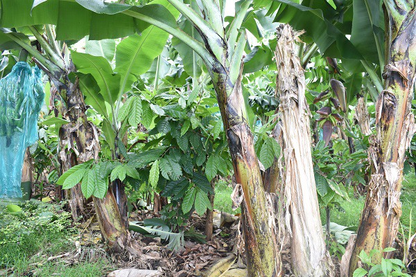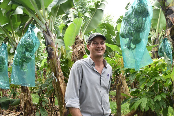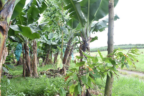 On his farm of 60 hectares, Patrick Aubery practices agroforestry on approximately 10 hectares. As a forerunner in stopping the use of insecticides thanks to permanent grassing, his goal is to succeed in improving the soil while growing bananas. “The main challenge is to find the right balance by adding plants while maintaining our production of quality bananas. Because the more plants there are, the more resilient the systems become to weather hazards.” No less than 5 varieties have been combined on the same plot: banana (the main crop), grass, cover plants such as desmodium, cocoa and eucalyptus.