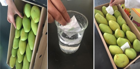 "The FYK ripener is very simple to use. Put an appropriate number of ripener packets in the fruit container or packing box. When using it, soak the packets first, and ensure that the box is relatively airtight during use. In only 2-3 days, 2 small packets can ripen a box of 10 kg mangoes and bananas which can be directly sold in the market 3-4 days after application. The FYK ripener is simple to use, leaves no residues, and is environmentally friendly," Wang said.