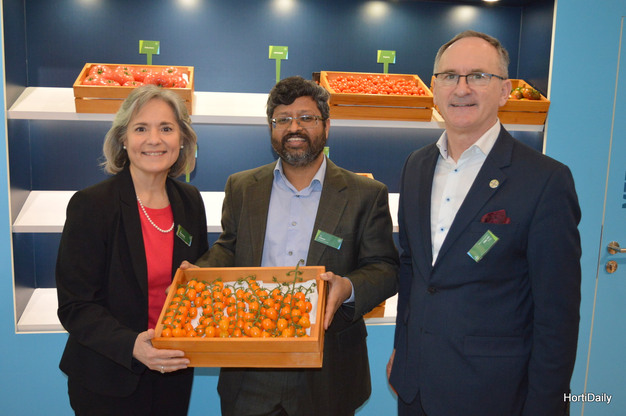Bayer Vegetable Seeds: Inci Dannenberg (President of Global Vegetable Seeds), VK Kishore (Global Head of Veg Seeds Smallholders & Sustainability) en Nico van Vliet (Global Value Chain Development Lead)