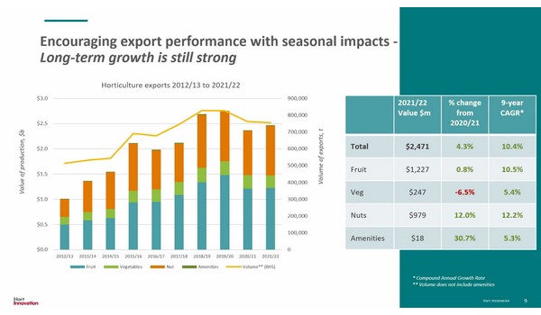 Hort Innovation Industry Analyst Lucy Noble added that exports are a fundamental channel to the growth of the horticulture industry.