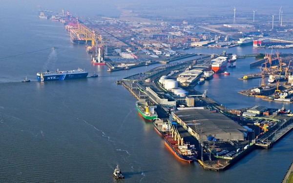 Aerial view of the port area in Bremerhaven