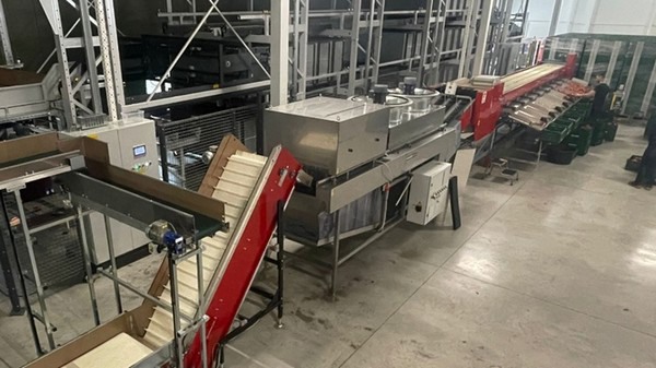 A pepper washer consists of two sections: a spray/wash section and a drying section. The length of these sections is determined depending on the sorting machine or capacity. With special brushes and sponges, the peppers move through the machine tilting so that water, brushes, and air can touch the peppers everywhere, but especially carefully around the calyx. The washer is usually placed in line with the sorter but can also be used stand-alone. To use the pepper washer, only a clean water supply, a power point, and drainage are required.