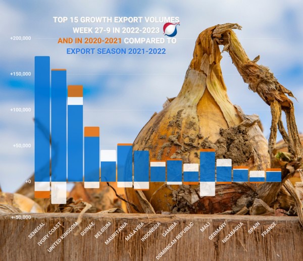 Those have even increased by almost 12,000 tons to 100,000+ tons. The growth decline in Ivory Coast and Senegal is all thanks to the exceptionally high prices. In early January, a 25 kg bale of Dutch onions sold for about €23 on the Senegalese market. That is a very hefty price for people who often have only a few dollars a day to spend.