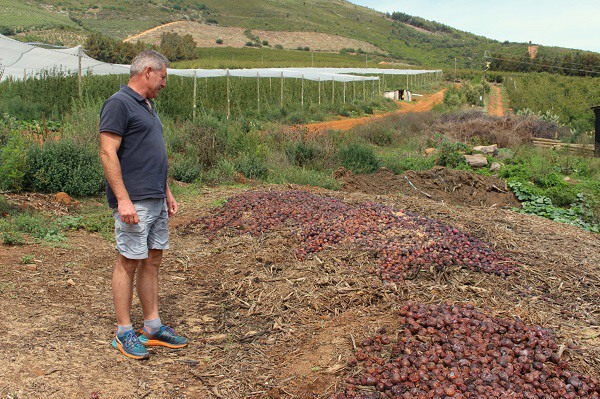 In its latest newsletter, the deciduous fruit industry body Hortgro features a plum farmer at the compost heap where his plums that have become too old for exports, have been dumped.
