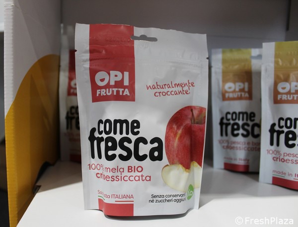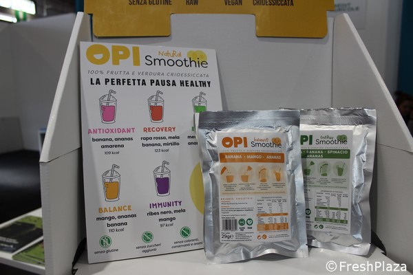 "Our product range includes snacks and instant smoothies: the first are destined to final consumers in the apple, pear, pineapple, cherry, peach and peach/banana flavors, while the second are destined to the H&R sector and include 5 recipes with freeze-dried fruits and vegetables," explains Corso Civolani, head creative marketer at OPI Frutta, as he illustrates the products launched at the Cibus Startup Area, where new entrepreneurial projects are selected by Le Village, Crédit Agricole Parma.