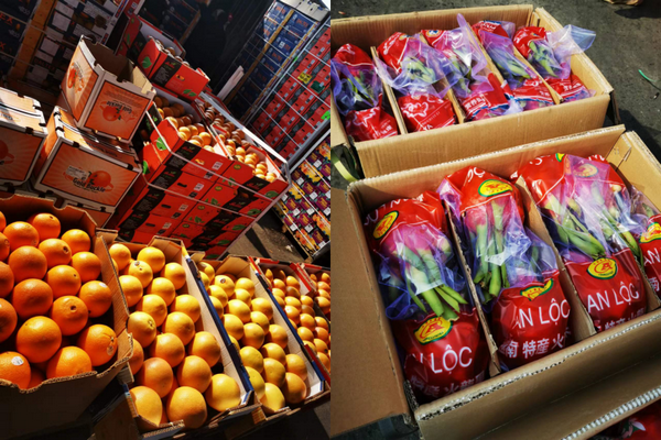 Left: Imported grapefruit; Right: Vietnamese pitaya fruit