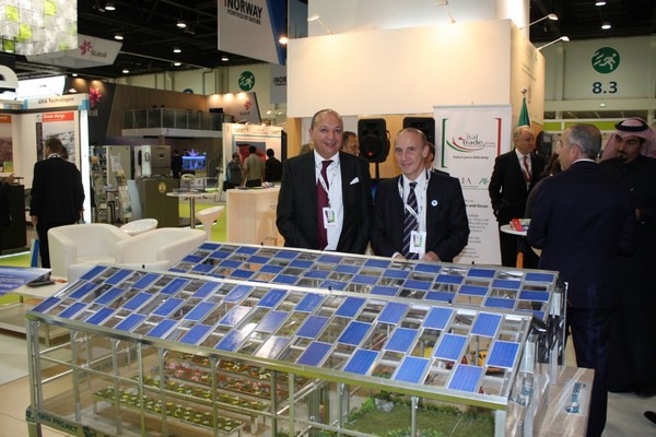 Presentation of a photovoltaic greenhouse model during a fair in Abu Dhabi (photo supplied by Francesco Mari)