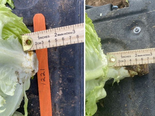 In addition to mechanical harvest, Easy Harvest iceberg lettuce is also very suitable for hand harvesting. The product sits up almost four times higher compared to a regular iceberg variety, making it a lot easier for hand harvesting. “There is more room to get the knife between the bed and plant, resulting in a smoother and faster cut,” said Brooks. Usually, there is about 2 cm. of room, but with this lettuce variety, there is about 6 or 7 cm. of space to work with.