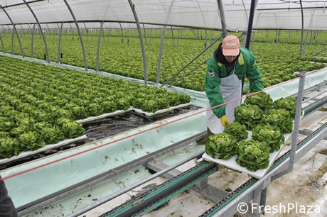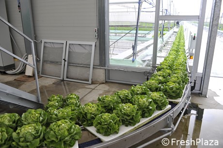 The harvest and sale of Ninfa brand lettuce, grown on 10 hectares of floating rafts in the Italian province of Ravenna, started last week. Gianluca Rossi, owner of Valle Standiana, looks with satisfaction at the lettuce, which, harvested by a small number of employees, is transported by conveyor belt directly from the growing site to the packing station.