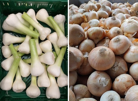 © JERSA Fruchtimport GmbH Left: Egyptian green garlic, Right: Spanish early onions