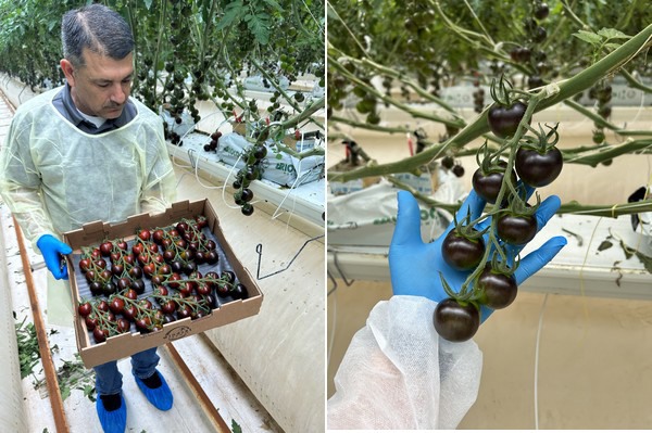 Cherry notes that walking through the greenhouses, the unique deep black color set against the fresh greenery is a site to see. “YOOM Cocktail Tomatoes are the color of black pearl on the outside, with a deep scarlet color on the inside, and have savory umami flavor,” Cherry says, adding that the tomatoes also contain high levels of anthocyanins, the pigment found in the tomatoes, which provide essential vitamins and minerals.