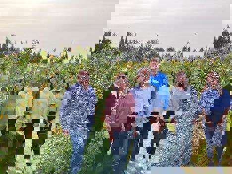 Carmelo Micale, president of OP Consorzio APAM inTorrenova (ME), Salvatore Imbesi, manager of Agrumi-Gel with Suntory's R&S team during a visit to a lemon grove in eastern Sicily