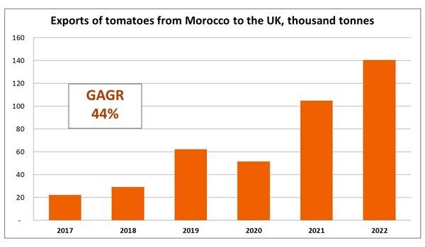 It should be noted that the export volume of Moroccan tomatoes is increasing gradually, while exports to the UK show the most rapid growth.