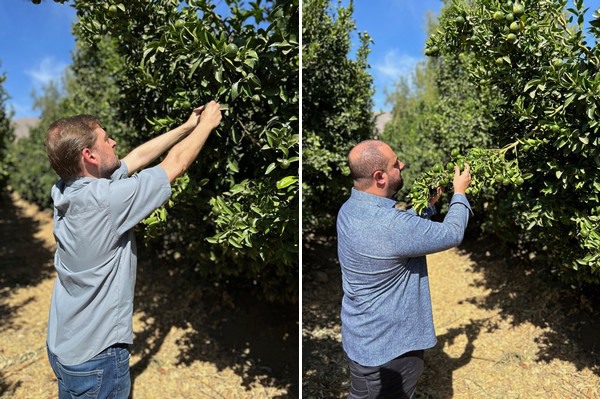 Haloua and Matouk get a closer look at the fruit on the trees.