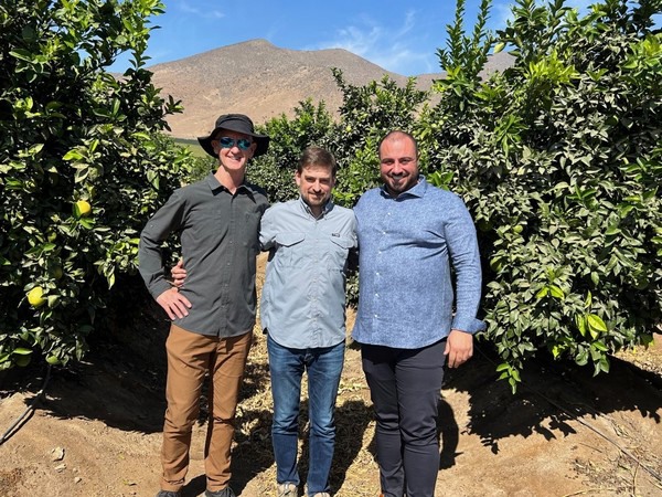 Left to right: Patrick Haines, EVP, Andrés Haloua, director of sales & procurement and Michel Matouk, CEO of World Fresh Produce visit growers in Chile before the start of the import citrus season.