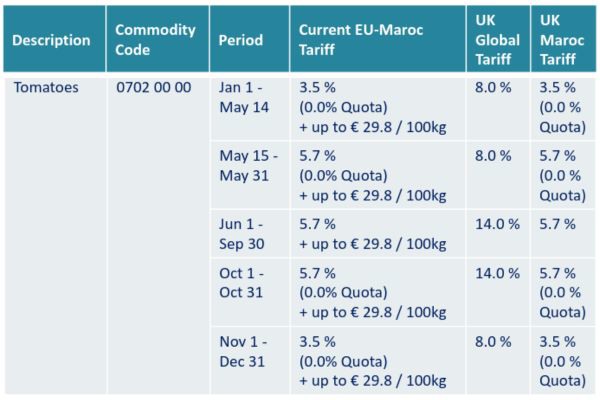 Tariffs for the export of Moroccan tomatoes to the UK. Source: Port Partners