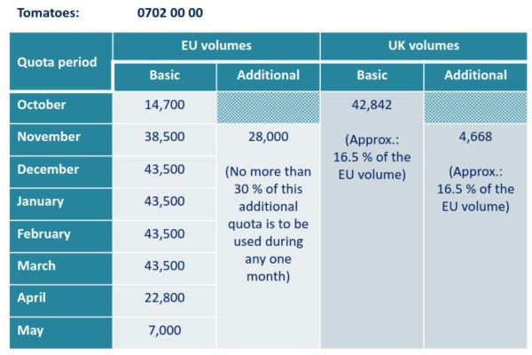 Quotas for Moroccan tomatoes exported to the UK. Source: Port Partners