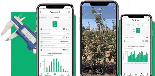 The system is divided into several modules. First, he said, Pixofarm makes it very easy to record the hangings in a given plant. "You simply go to a representative tree in the rows and photograph it with your smartphone. Pixofarm then counts the visible fruit in the square and estimates the non-visible fruit on the other sides of the tree. The same is done for other trees so that the sample can be increased quickly and easily. These images are used to calculate the average hanging per tree and the total number of fruits with an accuracy of about 95 percent," Auersperg says.