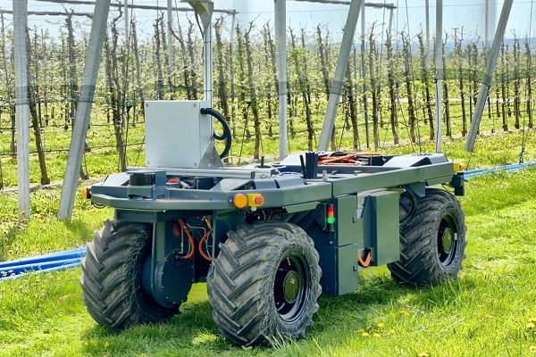 For this purpose, the Technical University of Dresden and the Fraunhofer Institute for Transportation and Infrastructure Systems IVI have installed a small mobile 5G transmitter unit on the LfULG's test fields in Dresden-Pillnitz. In an apple orchard, all work steps that the ELWOBOT will take over in the future will be tested until spring 2024. For example, tests are being conducted to determine how the use of pesticides can be reduced to the absolutely necessary level by scanning the treetops with a LiDAR sensor that determines the condition of the foliage. In addition, the sensor will continuously check the leaf growth of the trees and thus provide information on the condition of the nutrient supply. Tests will also be conducted to determine how well the ELWOBOT can perform maintenance tasks such as tilling the area under the trees and mowing and mulching the tramlines.
