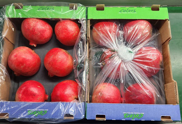 Apart from the pomegranates from five producers packed into the Colors brand, they also packed into generic boxes which, she remarks, proved an insightful counterpoint.