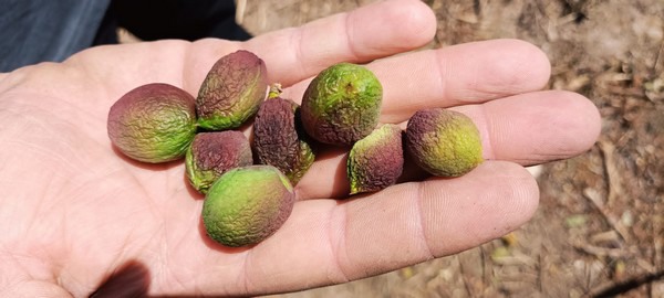Now fruit growers must decide what to do. On the one hand, the ideal thing would be to eliminate all these dehydrated fruits, which are already irrecoverable, but this task represents a cost in labor that cannot be passed on anywhere. On the other hand, the tree will spontaneously get rid of these fruits when it's sufficiently stressed, but in the meantime, it'll suffer more.