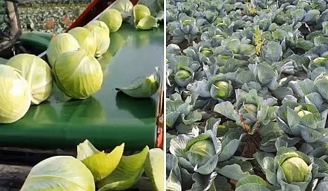 White cabbage being harvested.