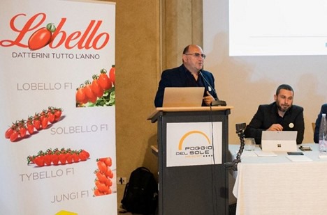It was then the turn of Sergio Amore, promoter of SAKATA Vegetable Europe Sas, of which Esasem is the exclusive distributor in Italy. Amore talked about rootstocks and specifically about "the tomato rootstock varieties developed by SAKATA Ficus F1, Auracaria F1, and Sequoia F1."